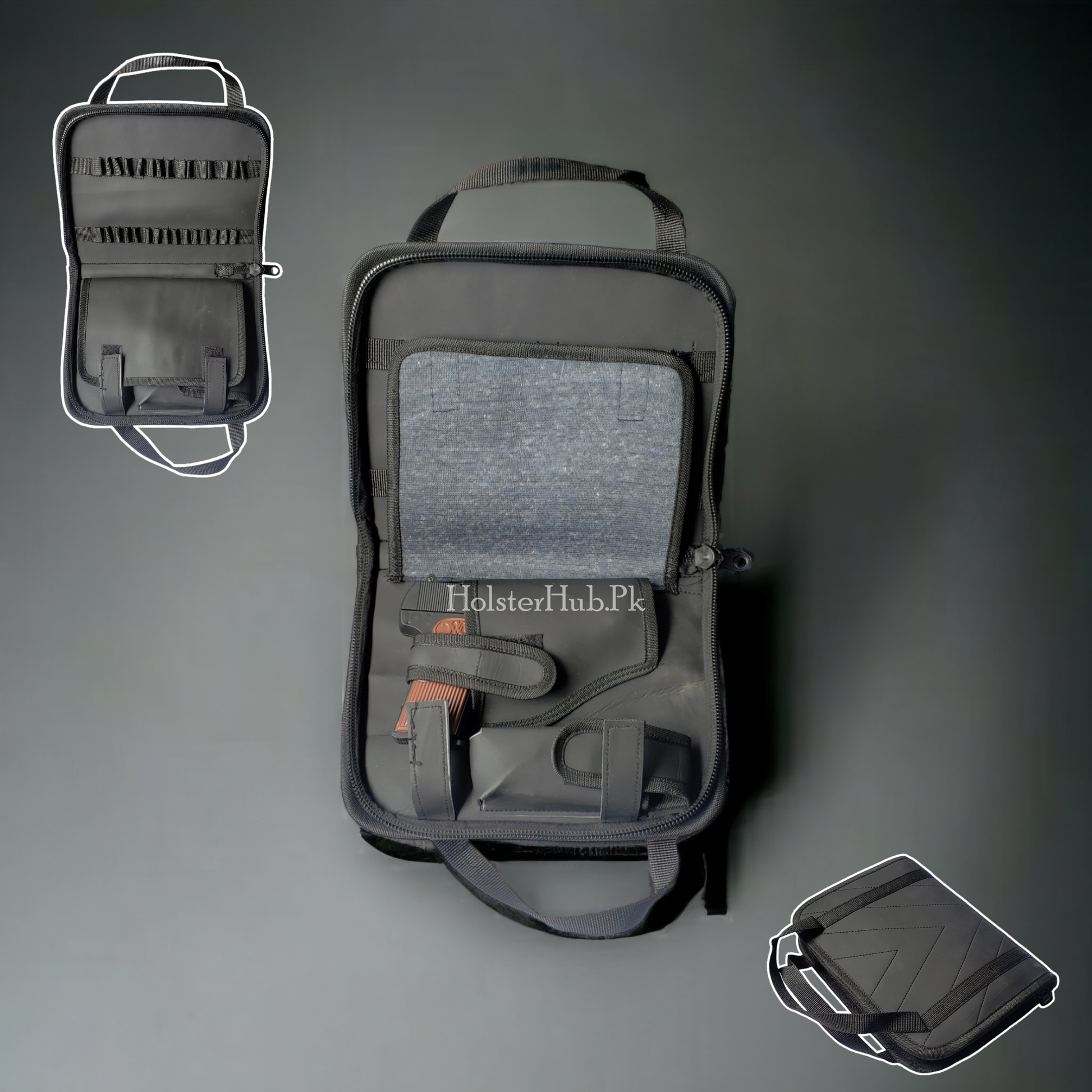 Crafted from premium PU leather, this sleek black pstol bag is designed to keep your wepon and amunition organized, secure, and protected — wherever you go.